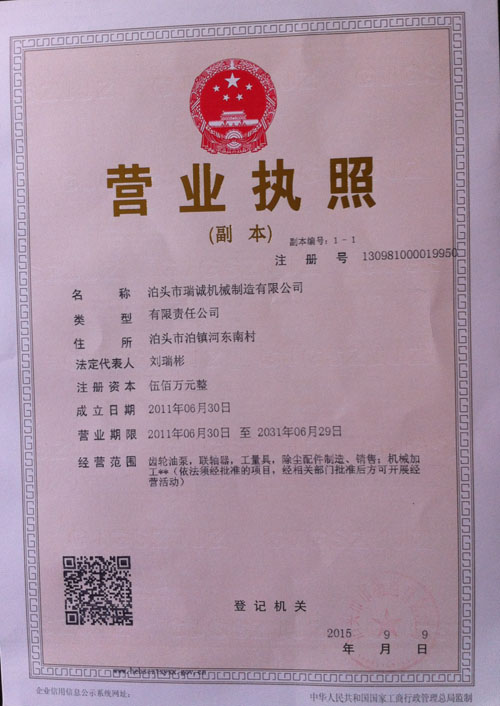 泊頭市瑞誠機械制造有限公司位于我國聞名的鑄造之鄉河北省泊頭市河東南工業區,我公司設備齊全,制造經驗豐富,具有雄厚的技術實力,順應現代化市場之所需,注重技術產品的科研和開發,使產品的種類不斷增加,質量合格率不斷上升,我公司已成為生產齒輪油泵等產品的規模化企業.